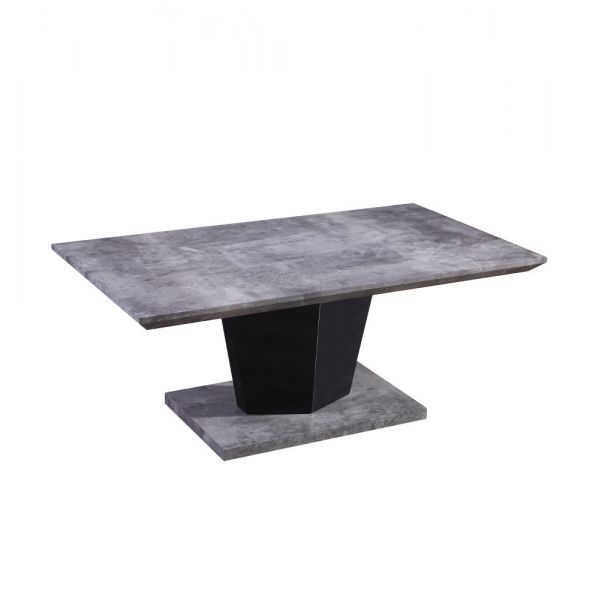 Concrete finish coffee table with high gloss pedestal.