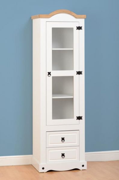 £189.99 £199.99 save: £10.00Corona 1 Door 2 Drawer Glass Display Unit in White/Distressed Waxed Pine/Clear Glass