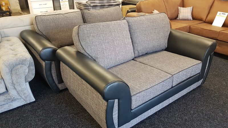 The Shannon Faux Leather & Fabric Sofa Set is a strong, sturdy set of living room furniture that adds a modern, contemporary feel to your surroundings. This sofa has a strong wooden frame for year round support, with sturdy chrome legs for added rigidity and benefits from thick luxury fabric seating pads with quality foam fillings. The Shannon Sofa Set has a sleek faux leather leather seat base complemented by a number of accented scatter cushions. Additionally this faux leather can be wiped clean, and the thick back support is perfect for relaxing upon.